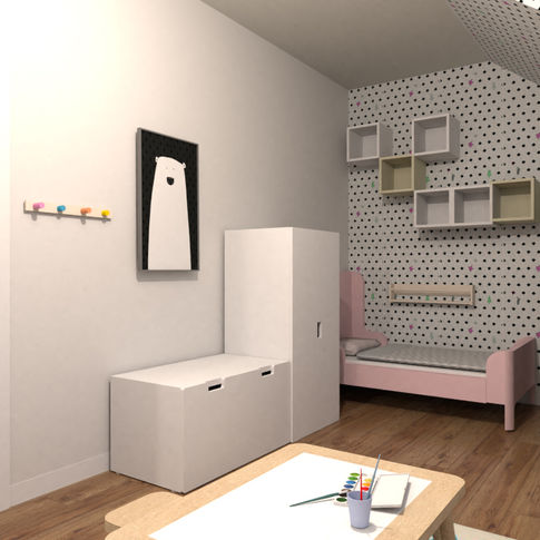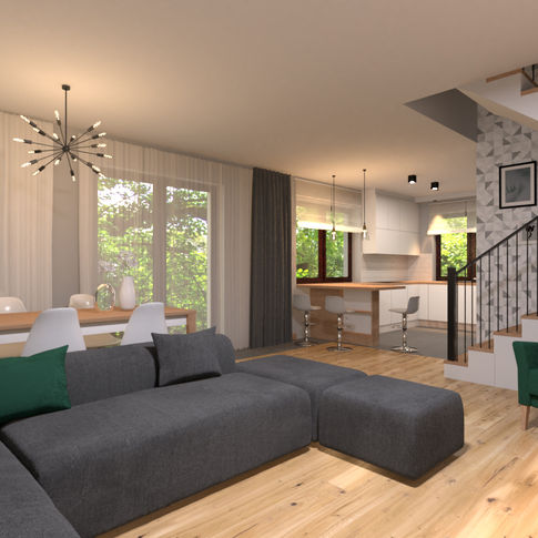 Wizualizacje projektu aranżacji wnętrz mieszkalnych w domu przy ul. Owoców Leśnych w Warszawie